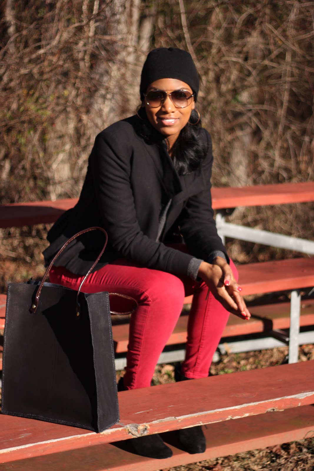 | Jacket- Zara Sweater-Ralph Lauren Jeans- Blank NYC Boots- Guiseppe Zanotti Tote- DIY Hat- Rick Owens Shades- Prada |