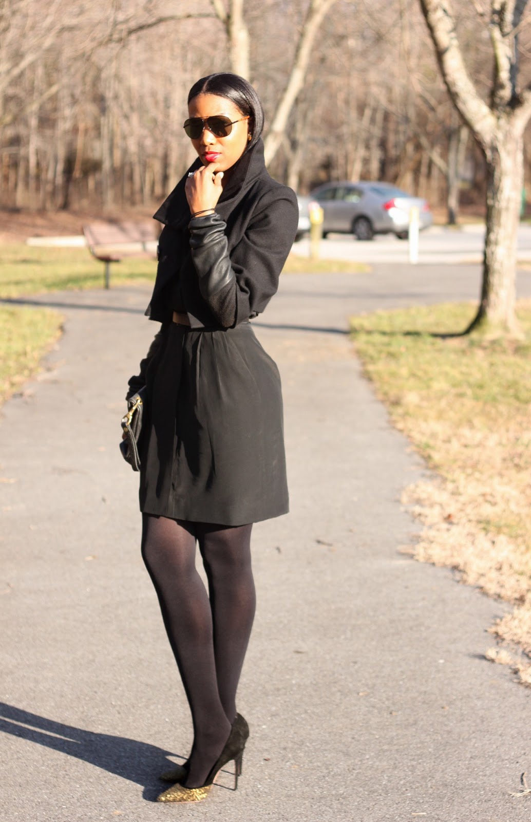 | Dress: Vintage Jacket- Burberry Belt- Roland Mouret Heels- Jean Michel Cazbat Clutch- JJ Winters Shades-Ralph Lauren DIY Arm Warmers |