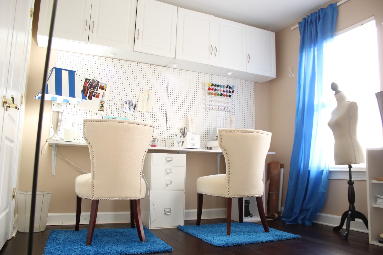 When it comes to coming way under budget I find the best solution is to DIY. Lately my sewing and craft projects seem to have taken on a life of their own, and because I have a touch of OCD It’s difficult for me to function in a cluttered disorganized work environment. My husband was awesome enough to not complain when I decided to take over yet another room in our house (he’s the greatest EVER!) so with maybe two days of prep I started the transformation of a guest room into a craft room. Sorry I accidentally deleted the before images, but picture a room 12×10 with a leather and wood queen size bed, a couple of lamps and that about sums it up. I wanted to create a space that was warm inviting and fueled my creativity all for $500.00, did I mention that $500 should also include hardwood floors? and doing the entire project 100% solo with exception of some heavy lifting.