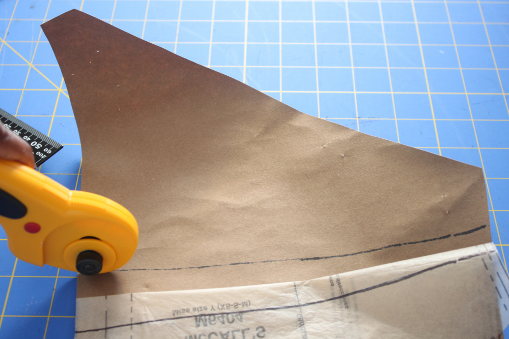 Traced pattern piece 13 onto builders paper, cut the piece down the middle to create two pieces and sewed the pieces back together to create seams.